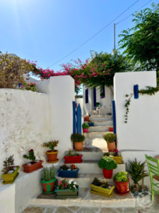 Naxos instantly felt calmer and more grounded compare to other Greek islands. It’s not about dramatic cliffs or nightlife, instead the vibe is family-friendly, beachy and authentic. whitewash houses decorated with flowers, uncrowded beaches, and a slower rhythm make it the perfect escape when you want to soak in greek island life without rushing.